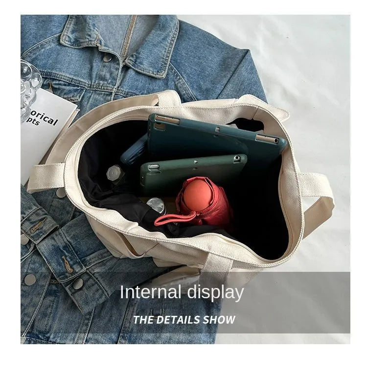 Stay stylish and organized with this versatile 2-in-1 canvas tote bag that comes with a matching coin purse. Designed for everyday use, this bag combines practicality with a clean, casual lookâperfect for school, work, shopping, or weekend errands.