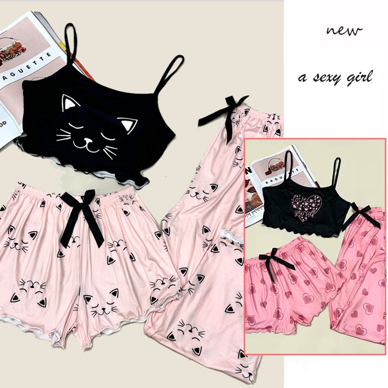 3in1 Spaghetti sleepwear terno shorts pajama:
