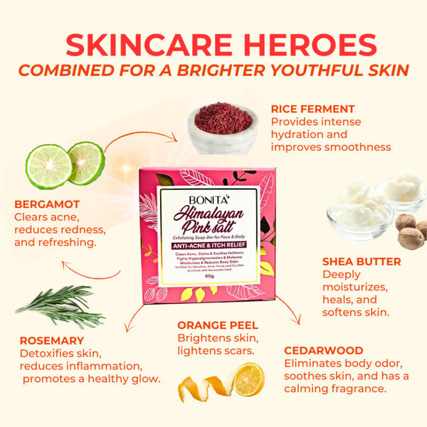 BONITA Himalayan Salt Soap Bar 80G Organic (Melasma & Clears Acne Marks, Soothe Rashes, Flawless)