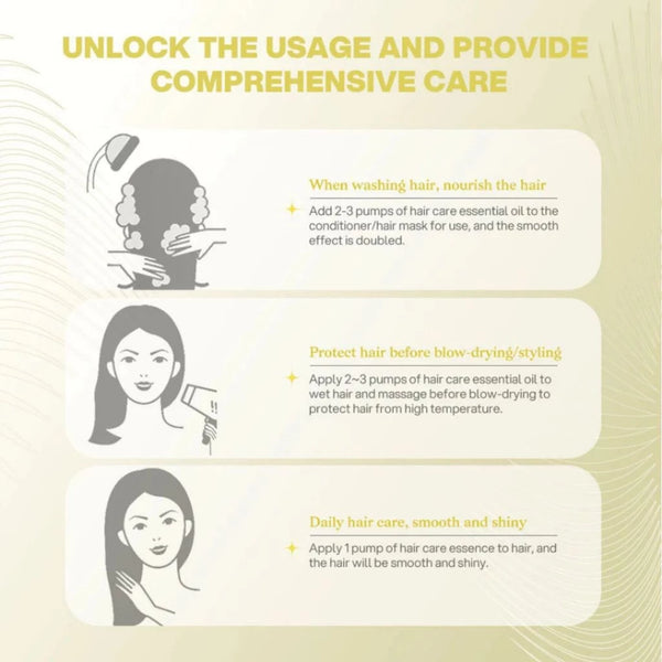 Apply evenly in a semi-wet state to insulate and protect hair.