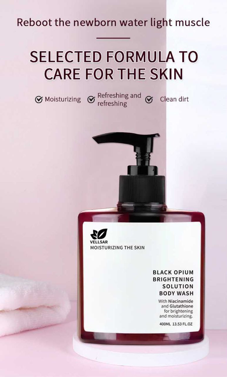 VELLSAR Black Opium Brightening Solution Body Wash is a unique 400ml shower gel. It's designed with Niacinamide, a key ingredient for your skincare routine. This body wash is perfect for those looking to enhance their daily shower experience.