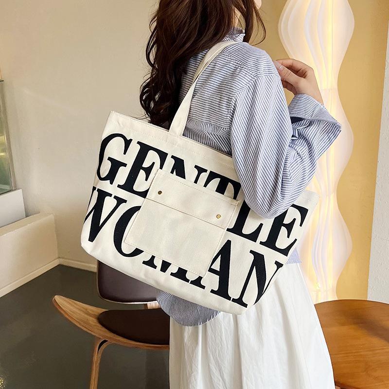 GW Large Capacity Letter Printed Canvas Tote Bag