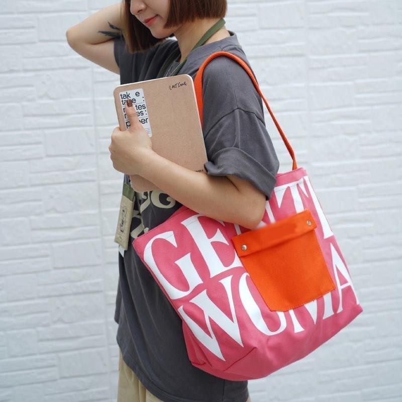 Gawa sa matibay na canvas, may maluwang na interior, at stylish letter print design na swak sa modern lifestyle.