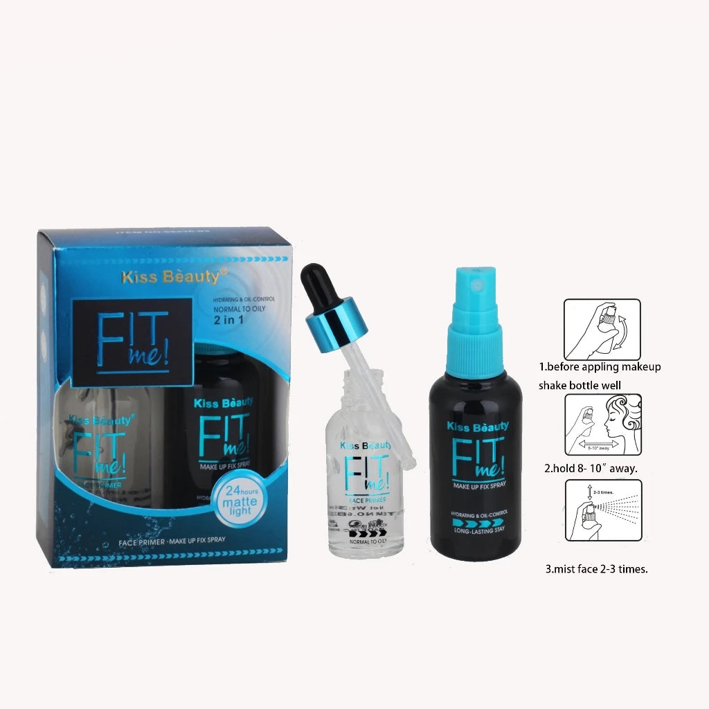 Elevate your makeup routine with the 2 in 1 Kiss Beauty Fit Me Oil Control Primer and Makeup Fix Spray. This dynamic duo ensures a flawless finish that lasts all day.