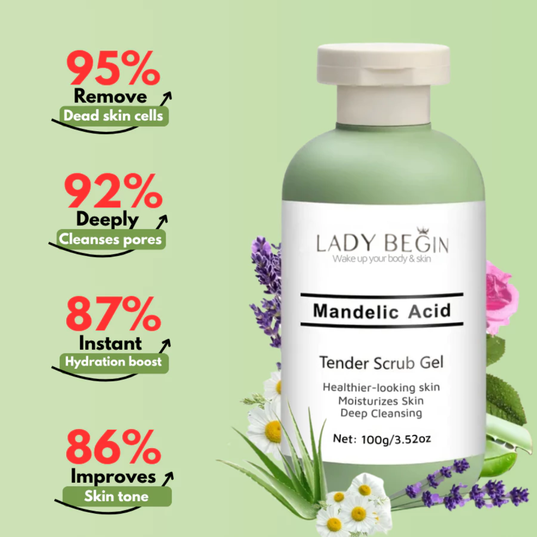 Lady Begin Mandelic Acid Tender Scrub Gel (200g) helps keep your skin smooth, fresh, and healthy-looking. With Mandelic Acid and natural extracts, this scrub gel gently removes dead skin cells, cleanses pores, and leaves skin soft and hydrated. Perfect for face and body use.
